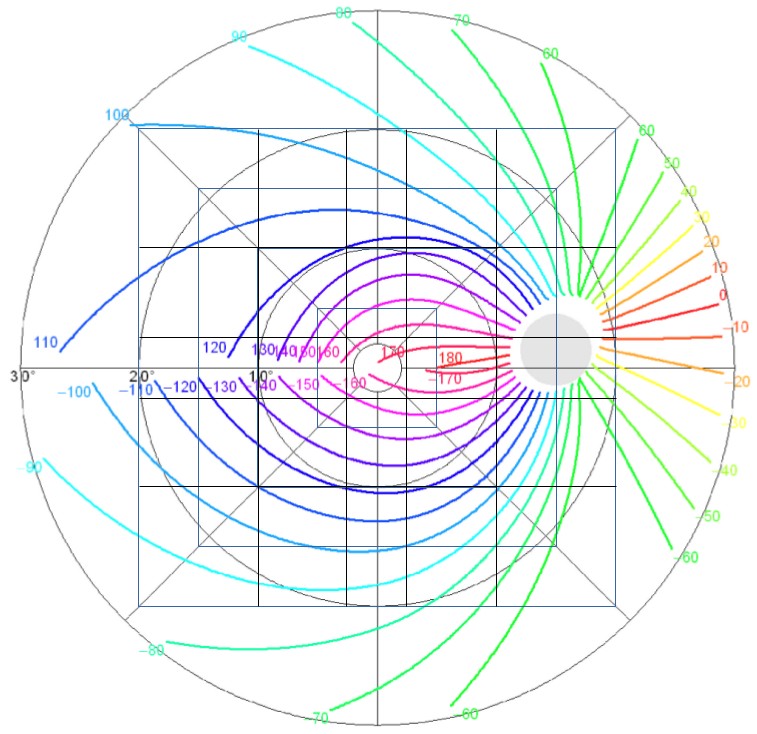 - emphasize on locations along the vertical meridian (x=0) and equator (y=0) to serve neuro-ophthalmology and glaucoma diagnostics